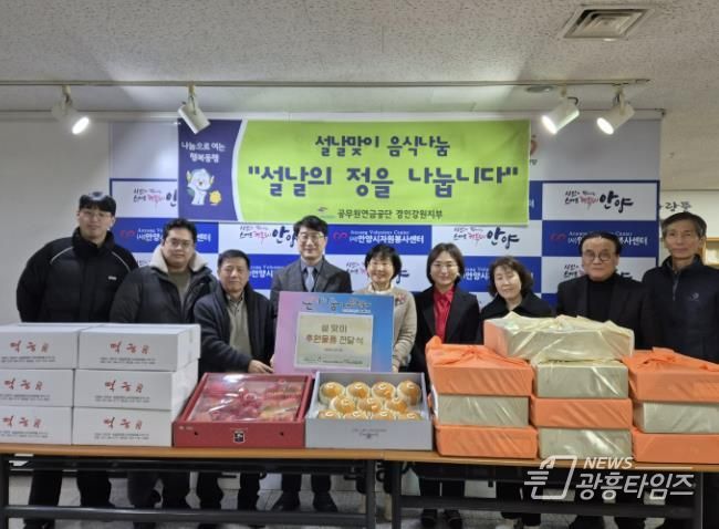 이날 공무원연금관리공단 경인강원지부에서 후원한 후원금 100만 원은 사전에 지원 대상기관의 수요를 반영해 떡국떡과 과일을 마련하는 데 사용됐으며, 관내 장애인 주간이용시설 및 노인 주간 보호시설 등 6개 기관에 전달됐다.