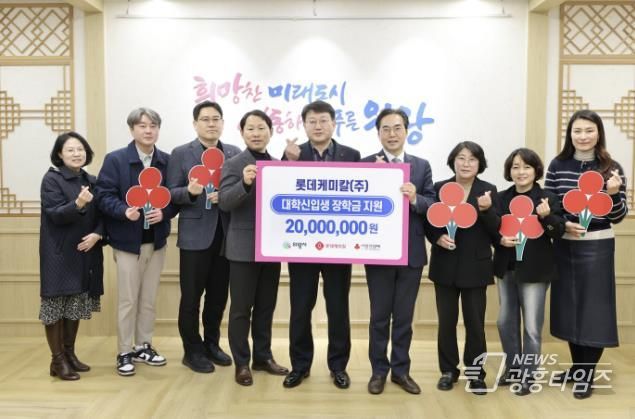 이번 장학금은 롯데케미칼 임직원이 매월 급여에서 자율적으로 기부한 금액에 회사가 동일한 금액을 더하는 ‘매칭그랜트’ 방식으로 조성됐으며, 롯데케미칼 임직원들의 따뜻한 마음이 담긴 후원금은 각 100만 원씩, 대학 신입생 20명에게 지원될 예정이다.