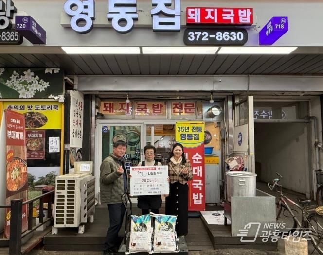 임영자 시장영동집 대표는 “작은 정성이지만 지역 내 어려운 분들이 든든한 한 끼를 드시는 데 보탬이 됐으면 좋겠다”며 “앞으로도 이웃에 대한 관심과 나눔을 지속해 나가겠다”고 전했다.