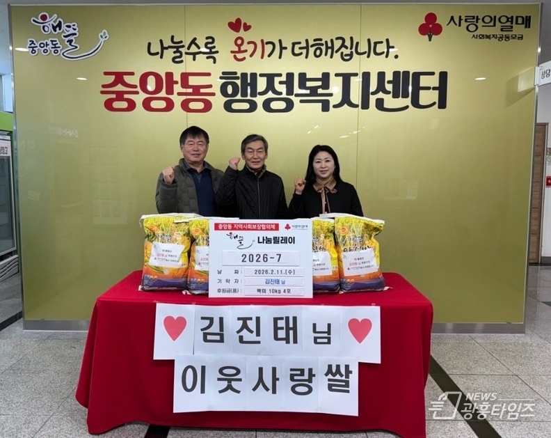 백경희 중앙동장은 “명절을 맞아 이웃을 먼저 생각하며 나눔을 실천해주신 김진태 통장님께 깊이 감사드린다”며 “이러한 주민들의 자발적인 참여와 관심이 복지사각지대 해소에 큰 힘이 되고 있다”고 전했다.