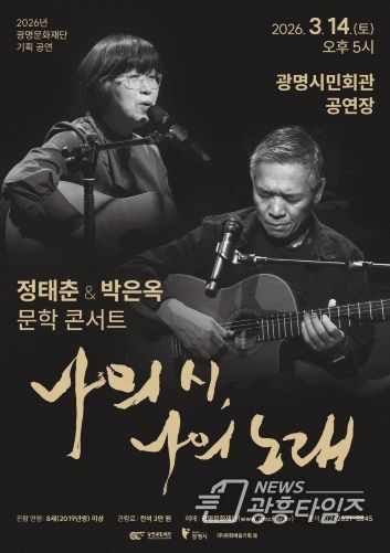 [광흥타임즈 = 조수제 기자] (재)광명문화재단은 오는 3월 14일 오후 5시 광명시민회관 공연장에서 한국 포크 음악을 대표하는 정태춘·박은옥의 문학 콘서트 '나의 시, 나의 노래'를 개최한다.