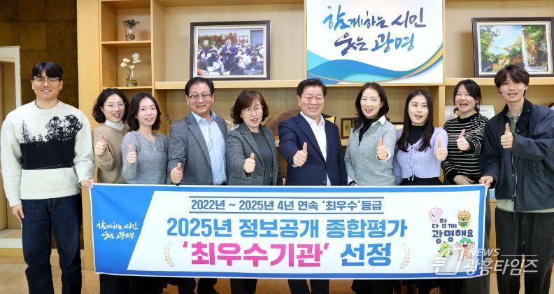 박승원 광명시장은 “4년 연속 최우수기관 선정은 시민에게 정확하고 충분한 시정 정보를 제공하기 위해 모든 공직자가 함께 노력한 결과”라며 “앞으로도 정보공개 제도를 더욱 촘촘하게 운영해 시민이 체감하는 투명 행정을 실천해 나가겠다”고 말했다.