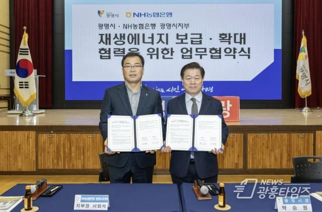 시는 13일 시청 대회의실에서 NH농협은행 광명시지부와 ‘재생에너지 보급·확대 및 사회공헌 연계 업무협약’을 체결했다.