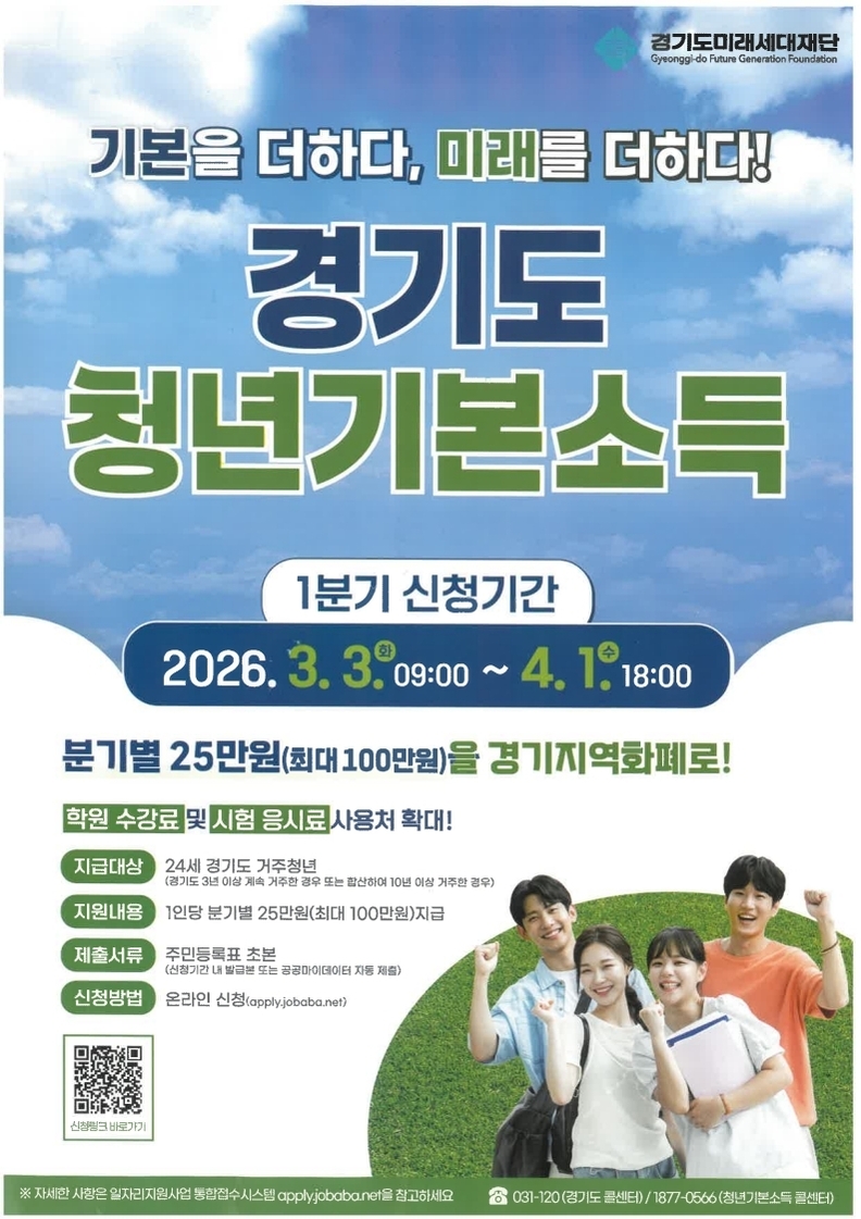 [광흥타임즈 = 조수제 기자] 오산시는 24세 청년에게 분기별 25만 원을 지급하는 ‘청년기본소득’ 2026년 1분기 신청을 3월 3일부터 4월 1일까지 접수한다고 밝혔다.