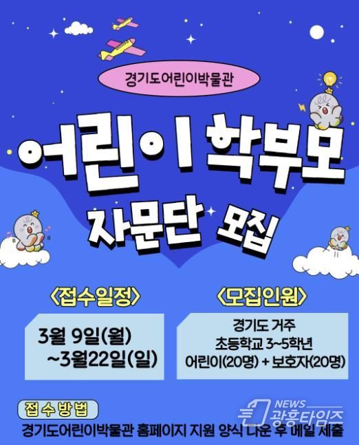 [광흥타임즈 = 조수제 기자] 경기문화재단 경기도어린이박물관이 2026년 개관 15주년을 맞아 ‘제17기 어린이자문단’을 전면 확대 운영하고, 신규 ‘학부모자문단’을 창설한다고 밝혔다. 이번 자문단 운영을 통해 어린이와 보호자를 박물관 운영의 핵심 파트너로 모시고, 이용자 의견이 실제 정책과 운영에 반영되는 ‘함께 성장하는 포용적 박물관’의 가치를 강화 할 예정이다.