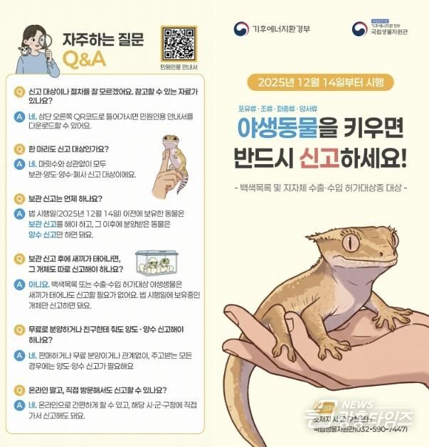 김성제 시장은 “야생동물 관리 제도가 확대 시행됨에 따라 시민들의 적극적인 관심과 신고가 필요하다”며 “가정에서 소규모로 야생동물(파충류나 양서류 등)을 사육하고 있는 경우 계도기간 내 신고 완료를 당부드린다”라고 강조했다.