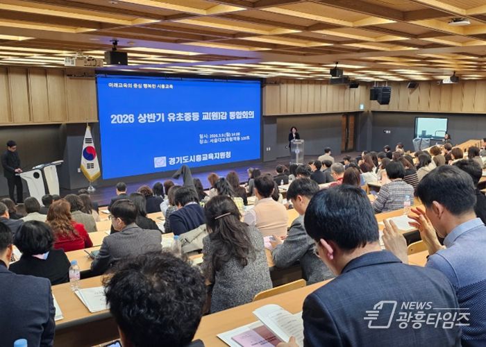 [광흥타임즈 = 조수제 기자] 경기도시흥교육지원청은 2026년 3월 9일 서울대학교 시흥캠퍼스에서 유·초·중·고 및 각종학교 교(원)감이 참석한 가운데 ‘2026 상반기 원감·교감 통합회의’를 개최했다.