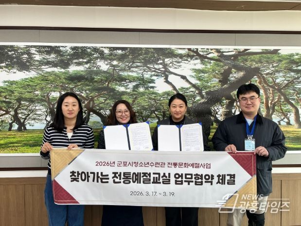 [광흥타임즈 = 조수제 기자] (재)군포시청소년재단 군포시청소년수련관은 2026년 3월 17일부터 19일까지 관내 초등학교 8개교와 '찾아가는 전통예절교실' 운영을 위한 업무협약(MOU)을 진행하고 있다.