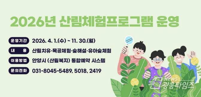 [광흥타임즈 = 조수제 기자] 안양시는 4월부터 서울대 안양수목원을 비롯한 관내 수목원에서 ‘산림체험 프로그램’ 운영을 시작하며, 현재 통합예약시스템을 통해 사전 예약을 접수 중이라고 23일 밝혔다.