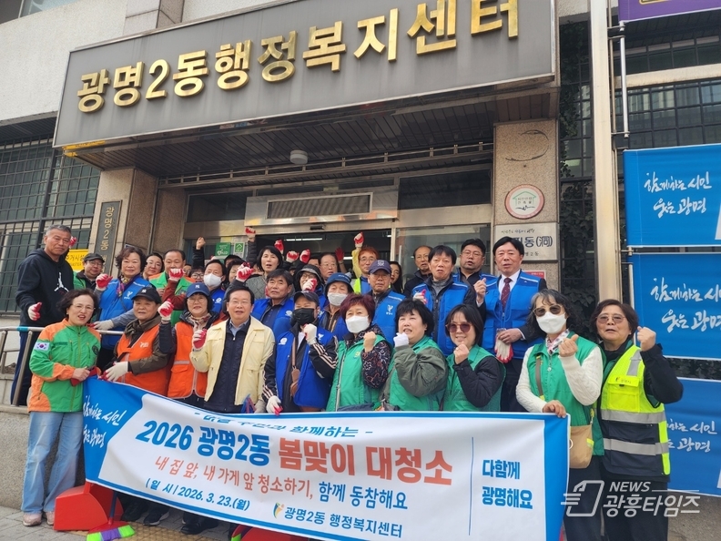 [광흥타임즈 = 조수제 기자] 광명시 광명2동 행정복지센터는 지난 23일 깨끗하고 쾌적한 마을 환경 조성을 위해 주민자치회, 통장협의회 등 관내 유관단체원 50여 명과 함께 ‘2026년 봄맞이 대청소’를 실시했다.