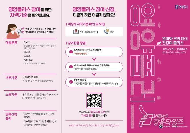 [광흥타임즈 = 조수제 기자] 부천시는 영양 위험요인을 가진 대상에게 영양상담과 교육을 지원하고 맞춤형 보충식품을 제공하기 위해 ‘2026년 영양플러스 사업’ 대상자를 모집한다.