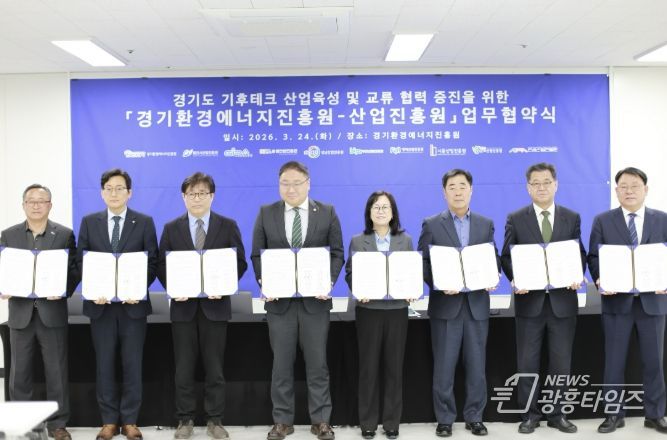 [광흥타임즈 = 조수제 기자] 군포산업진흥원은 24일 김포시 경기환경에너지진흥원에서 진흥원 및 경기도 내 산업진흥원과 함께 기후테크 산업 육성과 기관 간 협력 강화를 위한 업무협약(MOU)을 체결했다고 밝혔다.