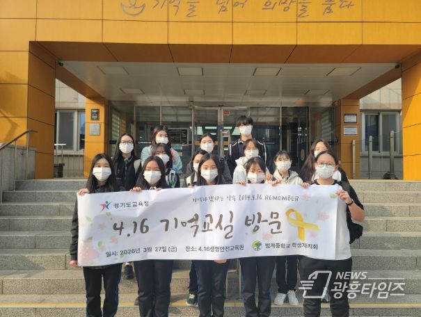 [광흥타임즈 = 조수제 기자] 안양 범계중학교(교장 박경숙) 학생자치회 학생 20여 명은 3월 27일에 세월호 참사의 교훈을 되새기고 생명 존중 문화를 확산하기 위해 경기도교육청 4.16생명안전교육원(안산시 단원구 소재)을 방문했다. 이번 방문은 매년 범계중학교에서 진행되는 ‘국민 안전의 날’ 행사 진행에 앞서 학생자치회가 주도적으로 기획했다. 12년이라는 시간이 지나 학생들이 ‘세월호 사건’을 잘 체감하지 못하는 것을 인식하고 이를 먼저 느끼고 알리고자 한 것이다.