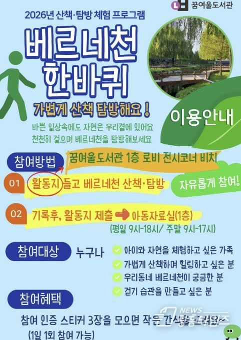 4월에는 수주도서관이 ‘이야기가 있는 마을’을 주제로 골목 드로잉 프로그램을 운영하고, 꿈여울도서관은 베르네천 하천 탐방과 생태 세밀화 그리기를 진행한다. 역곡도서관은 ‘역곡동의 사계’ 사진전과 숲 생태 프로그램을 운영하며, 원미도서관은 청년 대상 정신건강 카드뉴스를 제공하는 ‘부천 청년 멘탈 지키미’ 서비스를 운영한다.