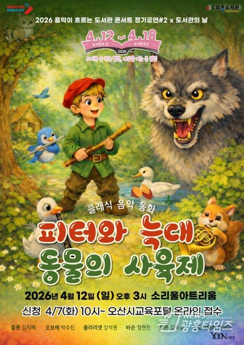 [광흥타임즈 = 조수제 기자] 오산시 소리울도서관은 오는 4월 12일 오후 3시 소리울아트리움에서 ‘2026 도서관의 날’을 기념해 온 가족이 클래식의 매력을 즐길 수 있는 '음악이 흐르는 도서관 콘서트'를 개최한다.