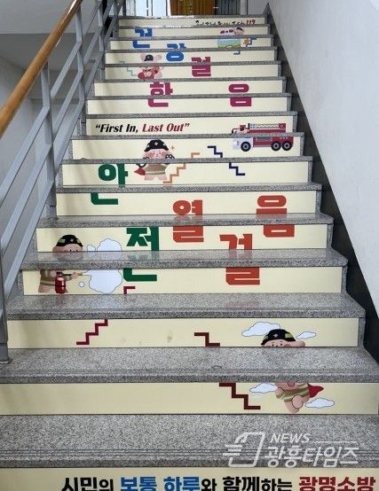 [광흥타임즈 = 조수제 기자] 광명소방서는 직원들의 건강 증진과 활기찬 근무환경 조성을 위해 본서 주계단에 ‘안전건강계단’을 설치했다고 밝혔다.