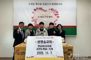 [광흥타임즈 = 구민지 기자] 의왕시 오전동에 위치한 생명숲교회가 11월 7일, 어려운 이웃을 돕기 위해 성금 30만 원과 라면 75개를 오전동주민센터에 기부하며 지역사회에 따스한 온정을 전했다. 이번 기부는 교회가 매년 꾸준히 이어오고 있는 나눔 실천 활동 중 하나로 추진됐으며, 소외된 이웃들에게 작은 힘이라도 보태고자 하는 교인들의 정성을 모아 마련됐다. 왕한상 담임목사는 “작은 정성이지만 어려운 이웃들에게 이번 기부가 도움이 되길 바란다”며 “앞으로도 지역사회와 함께 성장하며 나눔을 이어가는 교회가 되겠다”고 전했다. 신화정 오전동장은 “매년 이어지고 있는 생명숲교회의 따뜻한 나눔에 깊이 감사드린다”며 “기부된 성금과 물품은 도움이 필요한 지역 내 저소득층에게 전달하겠다”고 말했다.
