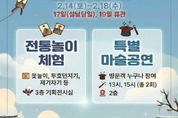 [광흥타임즈 = 조수제 기자] 시흥시는 설 명절을 맞아 시민과 방문객이 뜻깊은 시간을 보낼 수 있도록 오는 2월 14일부터 18일까지 해양생태과학관에서 설 연휴 특별 행사를 운영한다. 해양생태과학관은 설날 당일인 2월 17일을 제외한 연휴 기간 정상 운영되며, 연휴 이후인 2월 19일은 휴관한다. 연휴 기간 방문객들은 해양 생태 전시 관람과 함께 명절 분위기를 느낄 수 있는 다양한 체험 프로그램을 즐길 수 있다. 특히 2월 14일부터 18일까지는 방문객 누구나 참여할 수 있는 특별 마술공연이 진행된다. 공연은 해양생태과학관 2층에서 오후 1시와 3시, 하루 2회 운영되며, 해양 전시 생물 관람과 교육 프로그램과 연계해 색다른 즐거움을 선사할 예정이다. 이와 함께 설 명절의 정취를 느낄 수 있는 전통 놀이 체험 공간도 마련된다. 해양생태과학관 3층 기획전시실에서는 윷놀이, 투호 던지기, 제기차기 등 설날을 대표하는 전통 놀이를 해양생태과학관 운영시간인 오전 10시부터 오후 6시까지 누구나 자유롭게 체험할 수 있도록 운영할 예정이다. 시 관계자는 “설날 당일을 제외한 연휴 기간 해양생태과학관을 정상 운영하며, 방문객이 함께 즐길 수 있는 특별 공연과 체험 행사를