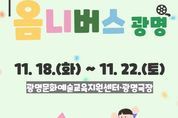 [광흥타임즈 = 조수제 기자] (재)광명문화재단은 오는 11월 18일부터 22일까지 광명문화예술교육지원센터·광명극장에서 2025 문화예술교육주간‘옴니버스 광명’을 개최한다. ‘옴니버스(Omnibus)’는 라틴어로 ‘모두를 위한’을 뜻하며, 여러 독립된 이야기를 하나의 주제로 엮는 형식을 의미한다. 이번 주간은 이러한 옴니버스 형식으로 다양한 문화예술교육 프로그램이 하나의 메시지 아래 연결되도록 기획됐다. 이번 행사는 ‘모두를 위한 문화예술교육’을 주제로 ▲대담회 '거장들의 대화: 청소년을 위한 특별한 예술 수업' ▲접근성 체험 프로그램 '경계 없는 교실(Beyond Limits)' ▲경기 지역중심 문화예술교육 지원사업 성과 공유회 '끝과 시작' ▲생활악기오케스트라 제7회 정기연주회 'Fuoco(불꽃)'까지 총 네 개의 프로그램을 통해 누구나 참여할 수 있는 포용적 문화예술교육주간을 구현하고자 한다. 18일 19시에 광명극장에서 2025년 문화예술교육주간 첫 시작으로 지난 9월 진행된 ‘페르테 예술학교’와 연계된 '거장들의 대화: 청소년을 위한 특별한 예술 수업'대담회가 열린다. 고희경 교수(홍익대 공연예술대학