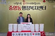 [광흥타임즈 = 조수제 기자] 오산시 중앙동행정복지센터는 지난 6일 우기제 지역사회보장협의체 전(前) 위원장이 지역 내 어려운 이웃들을 위해 직접 담근 파김치 30통을 기탁했다고 밝혔다. 이번에 기탁된 파김치는 관내 저소득층 가구에 전달될 예정으로, 취약계층의 식생활 지원은 물론 이웃의 따뜻한 관심과 온기를 함께 전하는 정서적 위로에도 도움이 될 것으로 기대된다. 우기제 전 위원장은 “정성을 담아 준비한 파김치가 이웃들에게 작은 힘이 되길 바란다”며 “앞으로도 지속적인 나눔 실천을 통해 지역사회에 보탬이 되겠다”고 말했다. 백경희 중앙동장은 “항상 이웃을 먼저 생각하며 따뜻한 나눔을 실천해 주시는 우기제 전 위원장께 깊이 감사드린다”며 “소중한 마음이 꼭 필요한 가구에 잘 전달될 수 있도록 행정적 지원을 아끼지 않겠다”고 밝혔다.