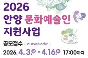 [광흥타임즈 = 조수제 기자] 안양문화예술재단은 지역 예술인의 창작활동을 지원하고 문화예술 진흥을 도모하기 위한 ‘2026년 안양 문화예술인 지원사업’ 희망자를 오는 16일 17시까지 공개 모집한다. 이번 공모는 안양에서 활동하는 예술인과 예술단체를 대상으로 하며, 안정적인 창작환경 조성과 더불어 경기도 내 우수 예술인의 안양 유입을 통해 시민들에게 보다 풍성한 문화예술 향유 기회를 제공하는 것을 목적으로 한다. 총 사업 규모는 3억 2,630만원이며, 이 중 지원금은 2억 7,400만원이다. 특히 올해는 ‘정산 간소화’ 제도를 시범 도입하여 예술인의 행정부담을 줄이고 창작활동에 더욱 집중할 수 있는 환경을 조성할 계획이다. 재단 관계자는 “이번 지원사업을 통해 지역 예술생태계가 활성화되고, 시민들의 문화향유 기회가 확대됨으로써, 안양이 보다 풍요로운 문화도시로 도약하길 기대한다”고 밝혔다.