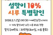 [광흥타임즈 = 조수제 기자] 시흥시가 설 명절을 앞두고 지역경제 내수 진작과 골목상권 활성화를 위해 지역화폐 ‘시루’ 10% 특별할인 행사를 진행한다. 명절 특별할인은 다음 달 1일 0시 30분부터 시작되며, 개인별 월 구매 한도는 모바일ㆍ지류권을 통합해 30만 원이다. 특별할인 예산이 소진되면 할인율은 8%로 전환된다. 지류형 시루는 관내 농협, 새마을금고, 신협에서 구매할 수 있으며, 모바일 시루는 ‘지역상품권 착착(Chak)’ 앱에서 충전 후 사용할 수 있다. 시 관계자는 “이번 특별할인을 통해 명절을 앞둔 시민들의 가계 부담을 완화하는 동시에, 경기침체로 어려움을 겪고 있는 지역 소상공인과 골목상권에 실질적인 도움이 될 것으로 기대하고 있다”라고 말했다.