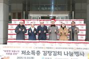 [광흥타임즈 = 조수제 기자] 안양시와 지역사회보장협의체는 ‘제12회 안양시 기부의 날(11. 3.)’ 기념식을 통해 모인 성금으로 마련한 김장김치를 저소득 가구에 전달하고자 지난 23일 시청 정문에서 나눔행사를 개최했다고 24일 밝혔다. 행사에 최대호 안양시장, 구재관 지역사회보장협의체 민간위원장, 이은경 민간부위원장, 이재훈 실무협의체 위원장, 류승용 안양시사회복지사협회장, 김광진 안양시사회복지협의회장 등이 참석했다. 마련된 김장김치는 올해 아직까지 김장김치를 지원받지 못한 저소득 586가구에 전달될 예정이다. 한편, 안양시는 성탄절과 연말을 앞두고 이웃을 위한 지역사회의 따뜻한 나눔도 잇따랐다고 밝혔다. ㈜효성 임직원이 2천만원, 주식회사 미미가 1천만원, 동편부부 한의원이 5백만원, 대성운수(주)가 3백만원, 한국공인중개사협회 안양 동안구지회가 246만원, 안양시치과의사회가 2백만원 등의 성금을 기탁했다. 또, 세광산업이 백미10kg 300포, 에이에프씨㈜가 백미10kg 200포, 민주평화통일자문회의 안양시협의회가 백미10kg 147포, 의왕 용화사가 백미10kg 130포, 안