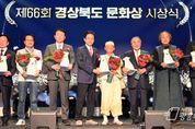 [광흥타임즈 = 조수제 기자] 경상북도는 23일 스탠포드호텔 안동 그랜드볼룸에서 제66회 경상북도 문화상 시상식을 개최했다. 이날 시상식에는 이철우 경상북도지사와 박성만 경북도의회 의장, 김학동 예천군수, 김재수 경북문화재단 대표이사, 권오수 한국예총 경북연합회장 등 문화예술 관계자들이 참석해 올 한 해 지역 문화예술 발전에 헌신한 수상자를 격려하고 축하했다. 경상북도 문화상은 1956년 제정된 이래 지역의 문화예술 진흥과 전통문화의 창조적 계승·발전에 공로가 뛰어난 사람에게 수여해 온 경북 문화 분야 최고의 권위를 자랑하는 상이다. 경상북도 문화상은 제65회까지 총 403명의 수상자를 배출했으며, 청마 유치환(1956, 문학), 한솔 이효상(1958, 공로), 김춘수(1974, 문학), 김집(1974, 체육) 등 경북을 대표하는 문화예술인이 수상자 명단에 이름을 올리며 지역 문화의 품격과 전통을 이어왔다. 이번 행사에서는 문학·체육·언론·문화·학술·시각예술·공연예술 등 7개 부문에서 각 1명씩 선정된 공로자에게 문화상이 수여됐다. 문학부문은 꾸준한 창작활동과 예천문인협회 창립, 지역