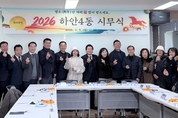 [광흥타임즈 = 조수제 기자] 광명시 하안4동 행정복지센터는 지난 5일 센터 2층 회의실에서 2026년 병오년(丙午年) 새해를 맞아 유관단체장과 마을연대활동가 등 30여 명이 참석한 가운데 시무식을 열었다. 이날 시무식은 지난해 적극적인 시정과 동정 활동으로 지역 발전에 헌신한 유관단체장과 활동가들에게 감사의 마음을 전하기 위해 마련했다. 참석자들은 새해 주요 업무 추진에 대한 의지를 다지며 하안4동의 도약과 화합을 기원하는 시간을 가졌다. 이재희 동장은 “유관단체의 적극적인 협조로 지난해 내실 있는 성장을 이뤘다”며 “올해는 소외된 이웃을 더욱 세심하게 살피고 주민 행복을 최우선으로 노력하겠다”고 말했다. 김성동 하안4동 단체장협의회장은 “2026년 새해에도 모든 주민이 행복한 하안4동을 만들기 위해 유관단체들이 한마음으로 협력하고 이웃사랑 실천에 앞장서겠다”고 말했다. 한편, 하안4동 행정복지센터는 시무식 종료 후 참석자들과 떡국을 함께 나누며 새해 인사를 전하고 소통과 화합의 의미를 더했다.