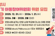 [광흥타임즈 = 조수제 기자] 안양시는 이달 21일까지 아동들이 시의 주요 정책 및 사업 추진 과정에 직접 참여하여 의견을 제시할 수 있는 ‘안양시 아동참여위원회’의 제1기 위원을 모집한다고 6일 밝혔다. 안양시 아동참여위원회는 지난해 6월 유니세프 아동친화도시 인증 이후, 보호의 대상이 아닌 권리의 주체이자 행정의 당사자로서 시정에 참여할 수 있도록 마련된 참여기구이다. 모집 대상은 2026년 기준 안양시에 주민등록을 두거나 관내 학교에 재학 중인 만 7세(초등 1학년)부터 만 16세(고등 2학년)까지의 아동이며, 모집 인원은 25명 내외이다. 시는 권역·성별·연령 등을 고려해 균형있게 위원을 구성하고, 장애·다문화·취약계층 등 다양한 배경의 아동이 고르게 참여할 수 있도록 할 방침이다. 아동참여위원은 2026년 3월부터 2년 동안 ▲아동 관련 정책 및 예산에 대한 토론 ▲아동권리 옹호·홍보 활동 ▲아동친화 공간 체험활동 ▲아동학대 예방 캠페인 등 시정의 파트너로서 다양한 활동을 수행하게 된다. 아동참여위원에게는 자원봉사 실적 인정, 표창 수여 등의 혜택이 주어진다. 참여를 희망하는