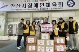 [광흥타임즈 = 조수제 기자] 안산시장애인체육회는 지난 15일 자원봉사단체 ‘기쁨을 주는 사람들(회장 조의철)’로부터 관내 후원 물품으로 쌀 100kg 상당의 떡을 기탁받았다고 16일 밝혔다. 이번에 기탁받은 떡은 관내 장애인체육 가맹경기단체에 배부되어 선수단과 관계자들에게 제공될 예정이다. 이날 후원은 새해를 맞아 장애인체육인들의 사기를 진작하고 화합을 응원하기 위해 마련됐다. ‘기쁨을 주는 사람들’은 10여 년간 어르신, 장애인, 아동 등 지역 내 이웃을 대상으로 생필품 지원과 식사 제공 등 다양한 나눔 활동을 꾸준히 이어오고 있는 자원봉사단체다. 조의철 회장은 “작은 정성이지만, 이번 나눔이 장애인체육인들에게 힘이 되길 바란다”고 말했다. 이동근 장애인체육회 상임부회장은 “이번에 전달된 후원물품이 장애인체육인들에게 따뜻한 응원이 됐다며, 앞으로도 장애인체육 발전을 위해 더욱 노력하겠다”고 말했다.