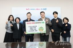 [광흥타임즈 = 구민지 기자] 의왕시가 2월 5일 시장 집무실에서 지역 내 어려운 이웃을 돕기 위한 ‘이웃돕기 후원물품 전달식’을 개최했다. 이번 전달식에서는 류호종 다사랑공동체 부장 등 관계자들이 참석해 지역 내 어려운 이웃들을 위한 나눔의 뜻을 전했으며, 생필품꾸러미 150박스(약 2,340만 원 상당)를 기부해 지역사회에 온기를 더했다. 김성제 시장은 “다사랑공동체의 따뜻한 나눔이 어려운 이웃들에게 큰 힘이 되고 있다”며 “의왕시가 더욱 촘촘한 복지망을 갖춘 도시가 되도록 더욱 노력하겠다”고 말했다. 류호종 다사랑공동체 부장은 “앞으로도 민관이 함께하는 나눔 활동을 통해 따뜻한 공동체 문화를 확산해 나가겠다”고 전했다. 한편, 이날 기탁된 후원 물품은 생활에 어려움을 겪는 취약계층과 복지 사각지대 이웃들에게 전달될 예정으로, 겨울철 생계 안정에 실질적인 도움이 될 것으로 기대된다.