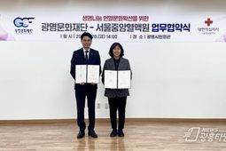[광흥타임즈 = 조수제 기자] (재)광명문화재단(대표이사 송은영)은 서울중앙혈액원(원장 이재용)과 함께 2월 20일 오후 2시에 광명시민회관에서 '헌혈자 대상 문화예술 프로그램 제공 및 헌혈 문화 정착을 위한 업무협약'을 체결했다고 밝혔다. 이날 협약식에는 양 기관장 및 관계 직원 등 10여 명이 참석했으며, 주요 협약 내용은 ▲생명나눔·문화나눔 실천을 위한 공동 프로그램 기획 및 운영 협력 ▲지역사회 헌혈문화 확산 및 문화예술 활성화를 위한 ESG 프로그램 공동 추진 등이다. 특히 광명문화재단은 재단이 주관하는 문화프로그램과 연계하여 헌혈자들을 위한 실질적인 예우 방안을 마련할 예정이다. 이를 통해 헌혈 참여자들에게는 문화적 보상을, 지역사회에는 ‘나눔과 예술’이 결합된 새로운 선순환 모델을 제시할 것으로 기대된다. 양 기관은 이번 업무협약이 “헌혈 문화 확산과 문화나눔을 통해 지역사회에 지속 가능한 사회적 가치를 실천한다는 점에서 의미가 크다”고 밝혔으며, 앞으로도 시민들이 일상 속에서 나눔의 가치를 체감할 수 있도록 다각적인 협력을 이어갈 예정이다.