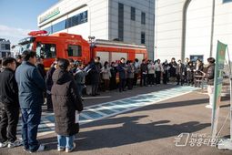 [광흥타임즈 = 조수제 기자] 경기도시장상권진흥원은 4일 임‧직원의 재난 대응 역량을 강화하고 안전관리 체계를 고도화하기 위한 ‘2025년 복합재난 대비 통합훈련’을 양평군에 위치한 경상원 본원에서 실시했다. 이번 훈련은 기존의 합동 소방훈련에서 벗어나 실제 생활에서 발생할 수 있는 지진 및 화재 재난 상황을 결합하여 복합재난 대응 중심의 실전형 훈련으로 기획됐다. 특히, 재난 발생 이후 발생할 수 있는 사이버 공격 사례, 주요 시나리오, 대응수칙 교육을 포함해 대민 서비스 공백을 최소화하기 위한 체계적 대응 역량 강화에 중점을 두었다. 추운 날씨 속에서도 김민철 경상원장을 비롯한 본원 임‧직원의 적극적인 참여로 진행된 이번 훈련은 양평소방서 공흥119센터(이하 공흥119)와의 합동으로 추진됐으며, 재난 상황 발생 시 행동 요령, 주의사항 등 실전 대응 능력을 집중 점검했다. 또한 양평군 내 소재한 공흥119 소방대원이 직접 소화기 사용법, 재난 상황별 비상대피 요령 강평 등 일상에서 필요한 안전 수칙을 교육하여 임‧직원이 재난 발생 시 피해를 최소화할 수 있는 기본 역량을 갖추도록 지원했다.