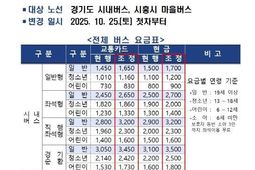 [광흥타임즈 = 조수제 기자] 시흥시는 오는 10월 25일 첫차부터 경기도 시내버스 및 시흥시 마을버스 요금을 조정한다. 이번 요금 조정은 지난 6년간 유지돼 온 요금 체계를 현실에 맞게 조정해 버스 운행의 안정성과 서비스 품질을 지키기 위한 불가피한 결정이다. 최근 수년간 최저임금 인상, 주 52시간 근무제 도입, 운영비 상승 등으로 버스 운수업체의 경영 여건이 악화하면서 일부 노선의 운행이 위태로운 상황에 놓였다. 이에 시는 시민의 일상을 지키는 대중교통 서비스가 중단되지 않도록 요금 조정을 추진했다. 조정된 요금은 교통카드 기준으로, 경기도 시내버스 일반형의 경우 ▲성인 1,450원에서 1,650원(200원 인상)으로 ▲청소년 1,010원에서 1,160원(150원 인상)으로 ▲어린이 730원에서 830원(100원 인상)으로 오르게 된다. 시흥시 마을버스 요금은 ▲성인 1,350원에서 1,650원(300원 인상)으로 ▲청소년 950원에서 1,160원(210원 인상)으로 ▲어린이 680원에서 830원(150원 인상)으로 조정된다. 시는 이번 요금 조정을 통해 확보된 재원을 경기도 공공관리제 확대, 배차 간격 단축, 노선 신설, 노후 차량 교체 등 서비스 개