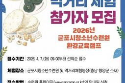 [광흥타임즈 = 조수제 기자] (재)군포시청소년재단이 운영하는 군포시청소년수련원(충남 청양군 소재)은 오는 5월 9일~ 5월 10일 주말 이틀간 ‘2026년 환경교육캠프(뻥! 지구웃음 먹거리 체험’을 운영한다. 해당 프로그램은 청양군의 지리적 특색을 살린 농촌 체험을 통해 자연과 더불어 지속하는 삶을 체험함으로써, 핵심 미래역량을 함양하고, 가족과 함께하는 여가활동을 통해 청소년기 건강한 가족 공동체를 도모하기 위해 추진되고 있다. 이번 활동은 1박 2일 숙박형으로 운영되며 1일차에 전통 먹거리(쑥개떡·인절미·뻥튀기) 만들기 체험이 진행되며 이후 청소년수련원으로 이동해 저녁 시간에는 가족 간 친밀감증대를 위한 자율 영화 상영 시간 등을 운영할 예정이다. 숙박은 군포시청소년수련원이 보유하고 있는 숙박실에서 진행되며, 체험 또한 수련원 인근의 체험처인 물여울마을에서 진행된다. 참가 신청은 4월 7일 09:00부터 모집 완료 시까지 선착순으로, 청소년수련원 홈페이지에 안내되어있는 **온라인신청페이지(네이버폼)**를 통해 접수할 수 있다.