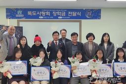 [광흥타임즈 = 구민지 기자] 의왕시청소년재단은 12월 4일 의왕시청소년수련관에서 (사)영토지킴이 독도사랑회 의왕지회와 함께 청소년 장학금 전달식을 진행했다. 이날 전달식에는 독도사랑회와 재단 관계자, 장학금 수혜 청소년 6명이 참석했다. 의왕시청소년재단과 독도사랑회 의왕지회는 지난 7월 8일 광복 80주년 기념 ‘디지털 독도체험관’을 공동 운영하며 협력의 기반을 마련한 바 있다. 이번 장학금 전달은 이러한 협력의 연장선상에서 이뤄졌으며, 독도사랑회 의왕지회는 지난 백운예술제 부스 운영을 통해 발생한 수익금 200만 원을 청소년 장학금으로 기탁했다. 전용복 회장은 “이번 전달식은 지역사회가 청소년의 성장을 위해 뜻을 모으는 의미 있는 자리”라며, “앞으로도 청소년의 교육·문화·성장을 지원하는 다양한 협력 사업을 의왕시청소년재단과 함께 추진하겠다”고 밝혔다.