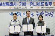 [광흥타임즈 = 구민지 기자] 화성특례시가 27일 시청 중앙회의실에서 유니세프 한국위원회, 기아 주식회사와 ‘다문화아동 지원 및 지역사회 민관 상생 협력을 위한 업무협약’을 체결했다. 이날 협약은 UN아동권리협약에 근거해 다문화아동의 권리를 증진하고 교육·복지 지원체계를 구축하기 위해 추진된 것으로, 민관이 협력해 ‘다문화아동 맞춤형 지원사업’을 운영하고자 마련됐다. 협약에 따라 각 기관은 다문화아동을 대상으로 안정적인 공교육 진입 및 지역사회 정착을 지원하기 위한 맞춤형 한국어 교육과 한국 역사 및 문화교육 제공하는 데 협력한다. 관내 이주배경청소년 지원 전담기관인 화성시글로벌청소년센터(지구별화성)가 맡아 다문화아동 및 미등록 이주 아동 발굴과 프로그램 운영 등을 담당하며, 기아 주식회사와 유니세프 한국위원회는 사업비 및 운영을 지원한다. 이날 협약식에는 정명근 화성특례시장, 송민수 기아 화성공장장, 조미진 유니세프 한국위원회 사무총장이 참석해, 관내 다문화아동 지원을 위해 상생 협력할 것을 다짐했다. 정명근 화성특례시장은 “화성특례시는 아동친화도시로 국적이나 출생 등록 유무와 관계