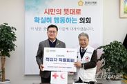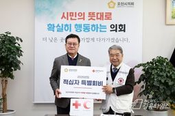 [광흥타임즈 = 조수제 기자] 오산시의회는 30일 의장실에서 대한적십자사 경기도지사에 적십자 특별회비 100만 원을 전달했다고 밝혔다. 이날 전달식에는 오산시의회 이상복 의장과 대한적십자사 경기도지사 이재정 회장과 이영재 대의원, 대한적십자사봉사회 오산지구협의회 김희자 회장을 비롯한 관계자들이 참석했다. 이상복 의장은 “적십자는 가장 어려운 순간마다 가장 먼저 현장으로 향해 온 우리 사회의 버팀목”이라며 “이번 특별회비는 오산시의회가 시민의 뜻을 모아 이웃의 곁을 지키겠다는 연대의 마음을 전하는 것”이라고 말했다. 이어 “오산시의회도 시민사회와 함께 손잡고 도움이 필요한 분들께 온기가 제대로 닿도록 역할을 다하겠다”고 밝혔다. 이재정 대한적십자사 경기도지사 회장은 감사의 뜻과 함께 오산시의 성과를 구체적인 수치로 전했다. 이 회장은 “오산시는 2025년 적십자 회비 모금에서 8억 9천 8백여만 원을 모금하며 목표 대비 114%를 달성했다. 이는 시민 한 분 한 분의 참여와 신뢰가 만들어 낸 값진 결과”라고 말했다. 이어 “올해 오산에서는 재난취약계층, 긴급지원, 결연지원, 맞춤형 지원