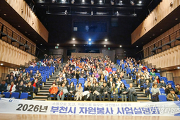 [광흥타임즈 = 조수제 기자] 부천시는 지난 5일 부천아트센터 소공연장에서 자원봉사 단체 임원과 봉사자 200여 명이 참석한 가운데 ‘2026년 자원봉사 사업설명회’를 열었다. 이번 설명회는 올해 자원봉사 운영 방향을 공유하고, 현장의 의견을 청취해 시민 중심의 봉사 문화를 확산하기 위해 마련됐다. 행사는 피아노 4중주 ‘오블리베르’의 재능기부 식전 공연으로 시작됐다. 이어 시민교육 콘텐츠연구소 강정모 강사가 특강 ‘자원봉사 마인드 리셋’을 통해 자원봉사 리더의 역할과 책임을 전했다. 이어 열린 2026년 주요 사업 및 지침 설명회에서는 연간 자원봉사 운영 방향과 세부 사업 내용이 안내됐다. 이 자리에는 70여 개 자원봉사 단체가 참여해 사업 추진 일정과 운영 기준 등에 대해 질의했으며, 향후 현장 적용과 관련한 다양한 의견을 제시했다. 이날 설명회에서는 부천 지역에서 활동하는 자원봉사자들의 노고에 감사를 전하고, 봉사자의 건강과 행복을 고려한 자원봉사 운영 방향을 공유했다. 아울러 단순한 시간 중심의 봉사를 넘어, 자원봉사의 가치를 확산하는 리더로 함께 성장하자는 메시지도 전달했다. 조용익 부천시장은 “이번 설명회를 통해 확인한 봉사자들의 참여를 바탕으로,