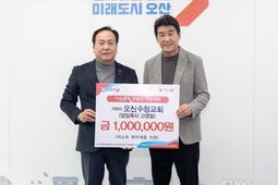 [광흥타임즈 = 조수제 기자] 오산시는 지난 26일 오산수청교회가 희망2026나눔캠페인에 동참해 관내 취약계층 지원을 위한 성금 100만 원을 기탁했다고 밝혔다. 이날 기탁식에는 고영철 담임목사와 황진규 부목사 등이 참석해 나눔의 의미를 더했으며, 전달된 성금은 연말을 맞아 경제적 어려움을 겪고 있는 관내 저소득 취약계층을 위해 사용될 예정이다. 고영철 담임목사는 “작은 정성이지만 어려운 이웃들이 따뜻한 겨울을 보내는 데 도움이 되길 바란다”며 “앞으로도 지역사회와 함께하는 나눔 활동을 지속적으로 이어가겠다”고 말했다. 이권재 오산시장은 “매년 어려운 이웃을 위해 꾸준히 나눔을 실천해 주시는 오산수청교회에 깊이 감사드린다”며 “기탁해 주신 성금이 꼭 필요한 이웃들에게 공정하고 투명하게 전달될 수 있도록 하겠다”고 밝혔다. 한편 오산수청교회는 2016년부터 10년째 관내 이웃을 위한 기부를 이어오고 있으며, 취약계층 지원과 봉사활동 등 다양한 사회공헌 활동을 통해 지역사회 나눔 문화 확산에 앞장서고 있다.