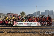 [광흥타임즈 = 조수제 기자] 오산시 초평동 단체연합은 지난 17일 서동 일대에서 지역 내 취약계층을 위한 ‘사랑의 감자 심기 행사’를 개최하며 나눔과 상생의 가치를 실천했다고 밝혔다. 이번 행사는 서동 소재 약 300평 규모의 농장에서 초평동 새마을지도자협의회(회장 송일열) 주관으로 진행됐으며, 초평동 단체연합 회원 등 50여 명이 참여해 뜻을 모았다. 참여자들은 밭고랑을 조성하고 비닐을 씌운 뒤 씨감자를 파종하는 등 풍성한 수확을 기원하며 구슬땀을 흘렸다. 송일열 초평동 새마을지도자협의회장은 “바쁜 일정에도 불구하고 감자 심기 행사에 적극 참여해주신 초평동 단체연합 회원들께 감사드린다”며 “정성껏 심은 감자가 풍성한 결실을 맺어 어려운 이웃들에게 도움이 되기를 바란다”고 말했다. 이기영 초평동장은 “이른 아침부터 이웃 사랑 실천을 위해 함께해 주신 단체연합 회원들께 진심으로 감사드린다”며 “앞으로도 지역사회와 협력해 나눔과 배려가 넘치는 살기 좋은 초평동을 만들어 나가겠다”고 밝혔다.
