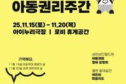 [광흥타임즈 = 구민지 기자] 화성시어린이문화센터가 ‘아동학대예방의 날(11월 19일)’과 ‘세계 어린이의 날(11월 20일)’을 맞아, 오는 15일부터 20일까지 ‘2025 아동권리주간’을 운영한다. 이번 행사는 아동 권리에 대한 인식을 높이고 아동권리 존중 문화를 확산하기 위해 마련된 행사로, 다양한 프로그램을 통해 어린이들이 자신의 권리를 이해하고 주체적으로 표현할 수 있는 기회를 제공한다. 주요 프로그램으로는 ▲아동권리 영화상영 ▲자기표현 워크숍 ‘내일의 우리’▲열린 참여공간 ‘어린이 마음지도’가 운영된다. ‘아동권리 영화상영’은 오는 15일부터 20일까지 센터 내 아이누리극장에서 열리며, ‘2025 세이브더칠드런 제11회 아동권리영화제’ 수상작을 상영한다. 오는 19일과 20일 진행되는 자기표현 워크숍 ‘내일의 우리’는 아동권리 교육과 역할극을 통해 어린이들이 스스로의 권리를 배우며, 갈등 상황 속에서 문제 해결 방법을 탐색해보는 행사로, 지역아동센터 어린이들을 초청해 진행된다. 센터 로비에 마련된 ‘어린이 마음지도’는 어린이들이 아동권리에 대한 자신의 의견을 자유롭게 남길