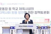 [광흥타임즈 = 조수제 기자] 경기도의회 정윤경 부의장(더불어민주당, 군포1)은 3월 16일 경기도의회 대회의실에서 열린 ‘운동장 등 학교 체육시설의 지역사회 활용 방안을 위한 정책토론회’에서 좌장을 맡아 학교 체육시설을 지역사회와 공유하는 다양한 방안을 논의했다. 이번 토론회는 도심 속 생활체육 공간 부족으로 인한 주민 불편을 해소하고, 학교를 지역 공동체의 거점 공간으로 활용하기 위한 협력 방안을 모색하기 위해 마련됐다. 토론회는 경기도의회와 경기도교육청이 공동으로 주최하는 ‘2026 경기도 정책토론회’의 일환으로 개최됐다. 토론회에는 김진경 경기도의회 의장, 임태희 경기도교육청 교육감, 김동연 경기도지사, 최종현 경기도의회 더불어민주당 대표의원이 축하 인사를 전하며 정책토론회 개최의 의미를 더했다. 이날 좌장을 맡은 정윤경 부의장은 “운동장 등 학교 체육시설은 지역사회의 중요한 생활체육 공간이자 공동체 소통의 거점”이라며 “학생의 안전과 교육 환경을 최우선으로 하면서도 학교의 부담은 최소화하고, 지역 주민들이 효율적으로 활용할 수 있는 합리적인 운영 방안을 마련하는 것이 필요하다”라고 토론회의 문을 열었