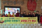 [광흥타임즈 = 조수제 기자] 광명전통시장이 이웃 사랑을 실천하는 ‘김장 나눔 행사’를 열고 13년째 따뜻한 나눔을 이어가고 있다. 지난 16일 시장 내 고객쉼터에서 열린 행사에서 상인회원들은 정성껏 담근 김장김치 280포기를 관내 취약계층과 복지기관에 전달했다. 상인회 조합원과 여성회 회원 등 20여 명이 참여해 배추 손질부터 양념 버무리기, 포장까지 손수 진행했다. 완성한 김치는 독거노인 31가구와 광명·철산복지관, 다솜지역아동센터에 전달해 따뜻한 겨울나기를 도왔다. 광명전통시장 상인회는 매월 독거노인 대상 반찬 봉사를 꾸준히 이어오며, 김장철에는 김치를 직접 담가 전달하는 등 지역 돌봄 활동을 지속하고 있다. 올해 나눔은 교보생명 재단의 후원으로 재료비와 준비 지원을 받아 더욱 풍성하게 마련했다. 또한 이날 행사에는 트로트 가수 조주한이 출연해 ‘한량가’, ‘막걸리 한 잔’ 등 흥겨운 무대를 선보였다. 이항기 광명전통시장 이사장은 “추운 겨울을 앞두고 이웃들에게 작은 힘이 되길 바란다”며 “광명전통시장이 시민들에게 많은 사랑을 받는 만큼 우리 상인회도 시