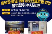 [광흥타임즈 = 조수제 기자] 경기도가 청소년 출입이 금지된 홀덤펍, 홀덤카페 108개를 대상으로 불법행위를 집중 수사한 결과 ‘청소년보호법’ 위반 사업장 13개소를 적발했다. 홀덤펍은 술을 마시면서 포커 등 카드게임을 즐길 수 있는 주점을 말한다. 이번 수사는 대학수학능력시험 이후 청소년에 대한 사행심 조장을 막고 유해환경으로부터 보호하기 위해 이뤄졌다. 적발된 사항은 19세미만 청소년 출입·고용금지 미표시 13건이다. 홀덤펍, 홀덤카페는 ‘청소년보호법’에 따라 청소년 출입·고용이 금지된 업소이기 때문에 업소의 출입구 중 가장 잘보이는 곳에 ‘19세미만 출입·고용금지업소’임을 표시해야 한다. 적발된 업소는 모두 출입구에 청소년 출입·고용금지업소 표시를 부착하지 않고 영업하다 이번 수사에 적발됐다. ‘청소년보호법’에 따라 청소년의 출입·고용을 제한하는 내용을 표시하지 않은 경우 최대 2년 이하의 징역 또는 2천만 원 이하의 벌금이 부과된다. 도는 적발된 업소에 대해 수사가 완료되는 즉시 검찰에 송치하고, 관계기관이 행정조치 할 수 있도록 수사결과를 통보할 예정이다. &nb