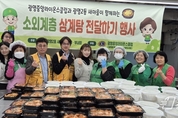 [광흥타임즈 = 조수제 기자] 광명시 광명2동 새마을부녀회는 지난 20일 관내 취약계층 200명을 대상으로 정성껏 준비한 삼계탕을 전달했다. 이번 행사는 지역사회 나눔에 앞장서는 광명중앙라이온스클럽이 삼계탕용 닭 200마리를 후원하고, 새마을부녀회가 자체 수익금(김 판매, 자선모금 등)으로 부재료를 마련했다. 새마을부녀회 회원들은 행사 전날인 19일부터 모여 닭 손질과 육수 준비 등 조리에 정성을 다했다. 20일 당일에는 완성된 삼계탕을 정성껏 포장해 대상 가구를 찾아 건강과 안부를 살피는 등 훈훈한 정을 나누었다. 삼계탕을 전달받은 한 어르신은 “정성이 가득 담긴 삼계탕 덕분에 큰 힘이 된다”며 “따뜻한 마음까지 함께 전해져 정말 감사하다”고 소감을 전했다. 이준미 회장은 “작은 정성이지만 어려운 이웃들에게 힘이 되길 바라는 마음으로 준비했다”며 “닭 200마리를 후원한 광명중앙라이온스클럽에 감사하며, 앞으로도 주민들과 온정을 나누는 활동을 지속하겠다”고 밝혔다. 정창수 동장은 “항상 지역사회를 위해 헌신한 새마을부녀회와 후원에 동참한 광명중앙라이온스클럽 덕분에 큰 힘이 됐다”며 “앞으로도 주민들이 서로 돌보고 함께하는 따뜻한 광명2동을 만들기 위해 노력하
