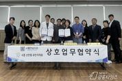 [광흥타임즈 = 조수제 기자] 시흥도시공사는 지난 25일, 나눔자리문화공동체와 지역상생과 사회공헌 활성화를 위한 업무협약을 체결했다고 밝혔다. 나눔자리문화공동체 이상기 회장은 그동안의 헌신적인 봉사 활동을 인정받아 2020년에는 자원봉사 분야 최고 훈격인 국민훈장 석류장 수상했고 다수의 봉사 관련 상을 수상한 바 있다. 현재도 매주 시흥시 취약계층을 위한 반찬 나눔 사업을 비롯한 다양한 공익사업을 꾸준히 이어가고 있으며, 이를 통해 지역사회에 나눔 문화를 확산하고, 사회적 가치 실현을 통해 지역발전에 기여하고 있다. 협약의 주요 내용은 ▲지역사회 복지 사각지대 해소 및 효과적 사회공헌을 위한 전략적 파트너십 구축 ▲지역사회 수요에 기반한 신규 협력사업 발굴 추진 및 지원 ▲협약기관 간 교류 협력 및 정보공유를 통한 협업 행정 등이다. 이번 협약을 통해 양 기관은 지역사회 수요에 기반한 실질적인 협력사업을 공동으로 추진하고, 복지 사각지대 해소와 효과적인 사회공헌이 이루어질 수 있도록 다양한 지원방안을 마련해 나갈 계획이다. 유병욱 사장은 “이번 업무협약은 지역사회와 함께 성장하는 공기업으로서 역할