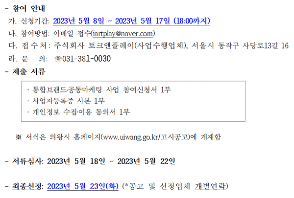 [의왕=구민지 기자] 의왕시는 ‘2023년 의왕시 사회적경제 통합브랜드ㆍ공동마케팅 사업’을 통해 관내 사회적경제에 활기를 더할 참여업체를 모집한다.