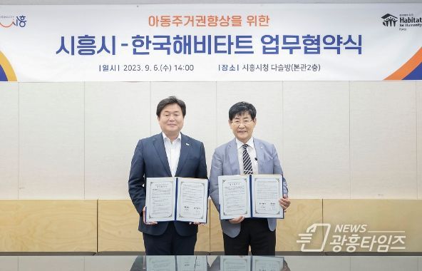 [광흥타임즈 = 조수제 기자] 시흥시가 6일 시청 다슬방에서 한국해비타트와 ‘아동 주거권 향상을 위한 업무협약’을 체결했다.